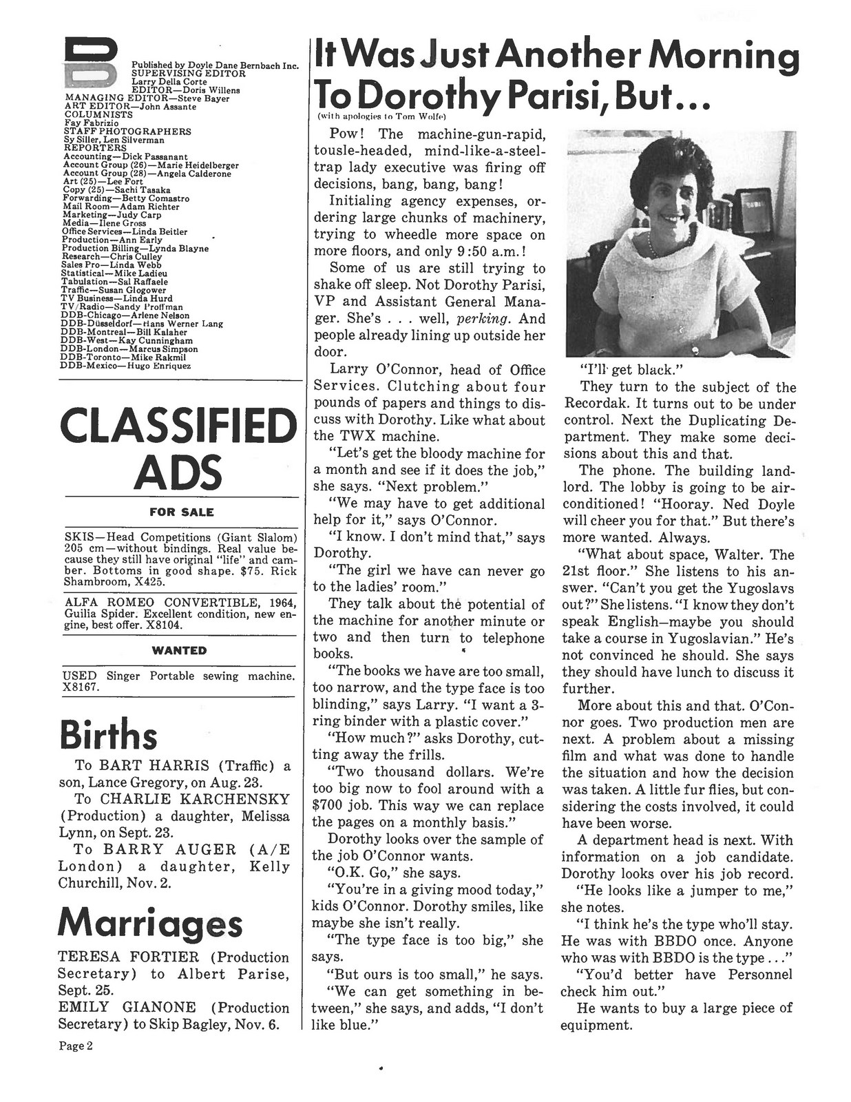 I chanced upon this whilst researching this series.DDB News, 1966 - The Women's Issue.It's an odd little thing; one minute it feels progressive, the next..not*. (*Yes, I'm talking to you Legs Page.)But it's a useful snapshot of the environment the women I've written about were working in at the time.Also, DDB would've been one of the most progressive agencies. (See previous posts for details.)