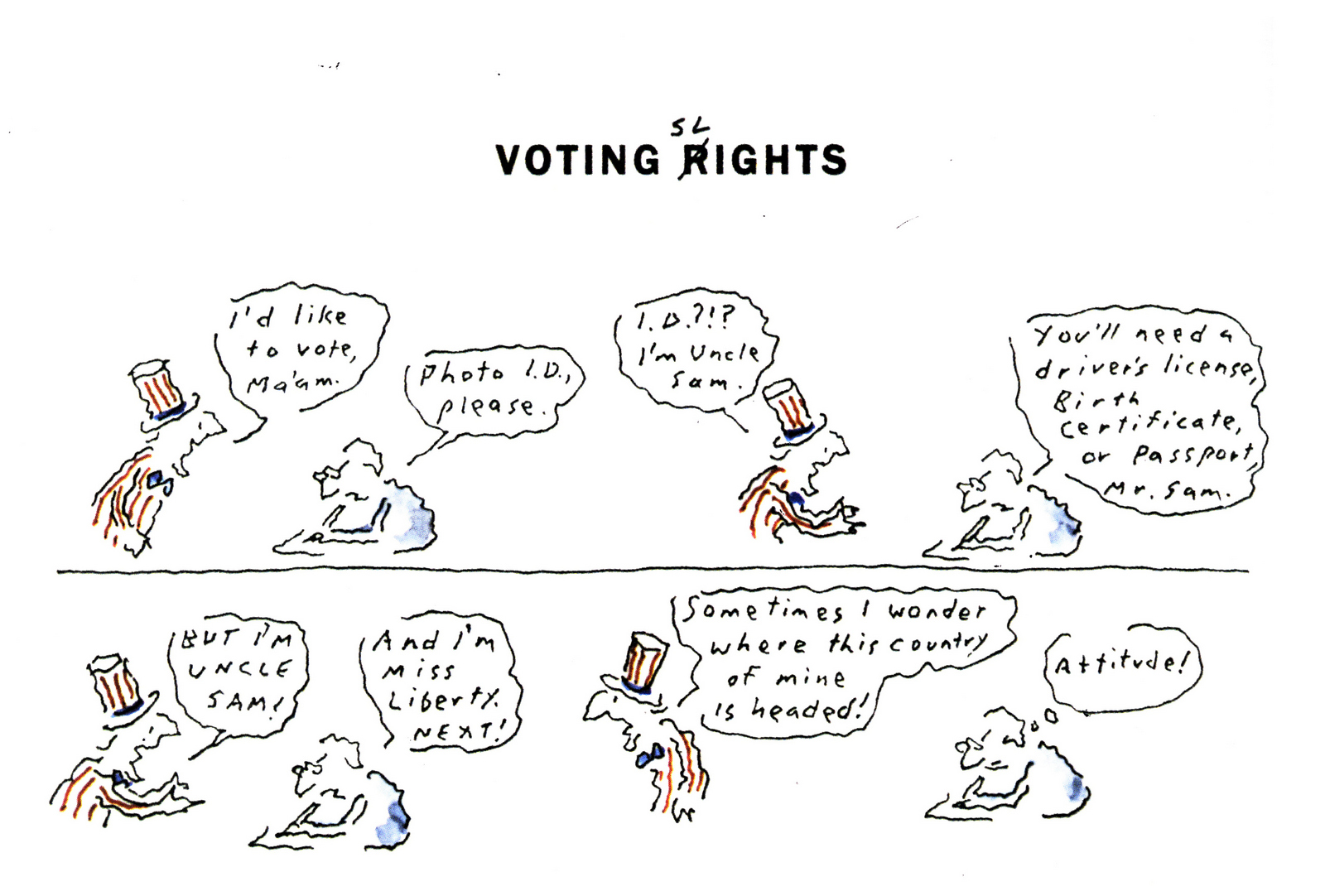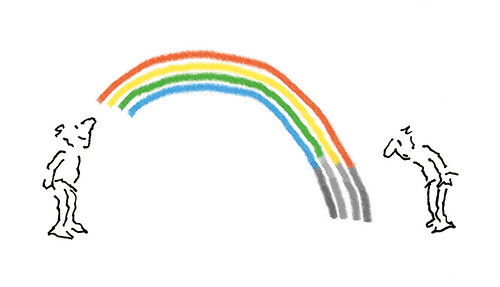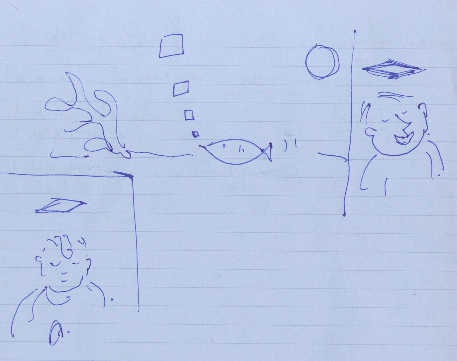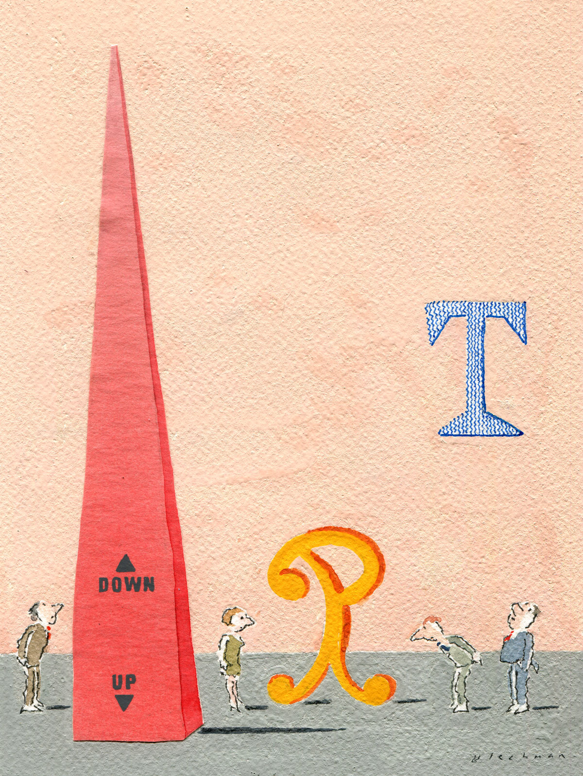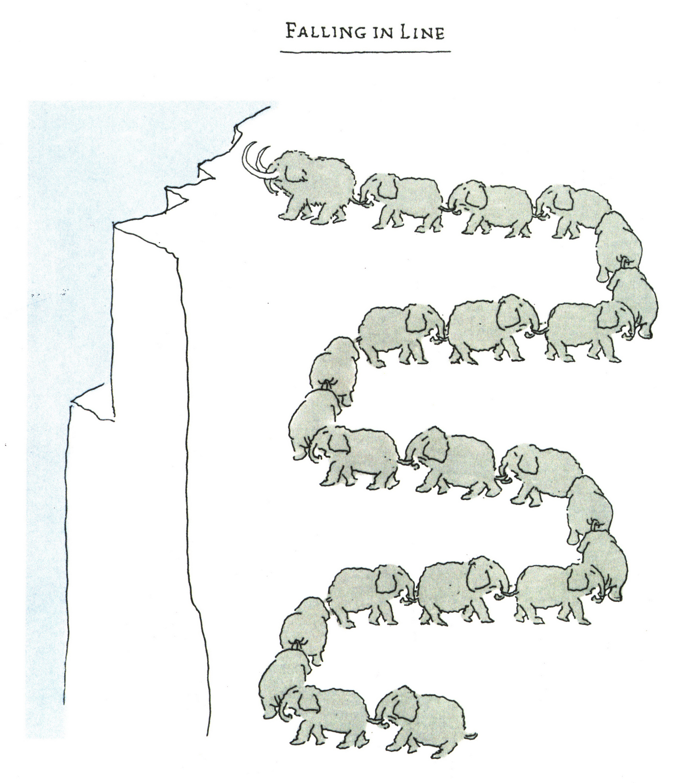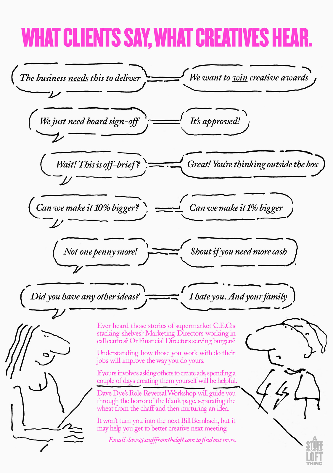 That was the first drawing I saw by R. O. Blechman.I loved it instantly.Firstly, it's a great observation of how companies operate, particularly ad agencies.But also, I was in the ideas business and I'd never seen them represented like that - in different levels from a tiny lightbulb to an enormous chandelier.I also loved the naive style of the drawing.It looked like a note one naughty child would pass to another secretly in class.Drawn in a hurry because they were excited.The apparent lack of craft means it feels personal, human.A master draftsman like Leonardo daVinci couldn't improve it.He'd kill it.Over the years I became more familiar with Blechman's lines.Often referred to as a nervous line.Countless ad folk have copied it - Alan Parker, John Hegarty, Gray Jolliffe and dozens more, including me, it just looks so easy (try it).You'll find you can draw squiggley lines in the shape of a person, but they feel like those chalk outlines the police draw around bodies; dead.Bob's not only feel alive, they conjure up multiple personalities with endless emotions.Often with a couple of dots and two or three lines.It's like some kind of magic trick.And whereas most artists get smoother, slicker and more polished over the years, Bob chose to move in the opposite direction - his line becoming more broken and juddery with each year. (Come to think of it, didn't Picasso take a similar route?)Take a look - early, later, later still.
