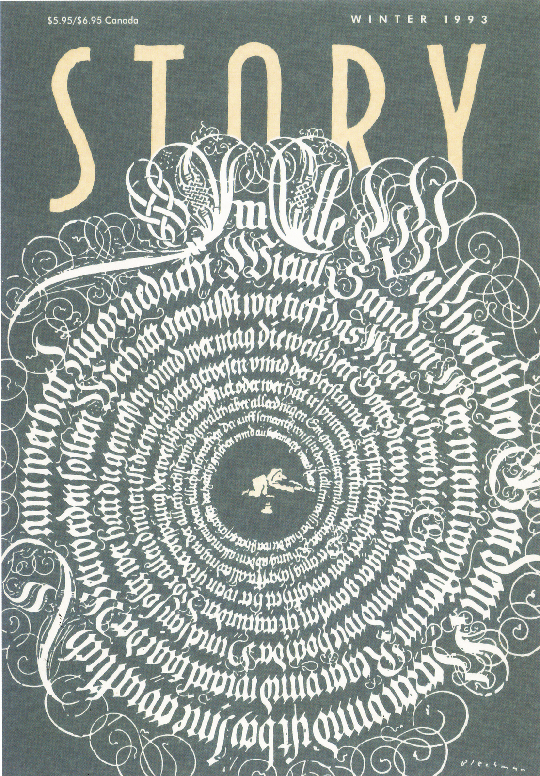 Story Magazine.Bob was offered a token fee, $100, by a new magazine to reprint one of his old drawings on their launch issue, he decided 'who cares about the money' and created a new drawing.This lead him to create every cover for the next 8 years.