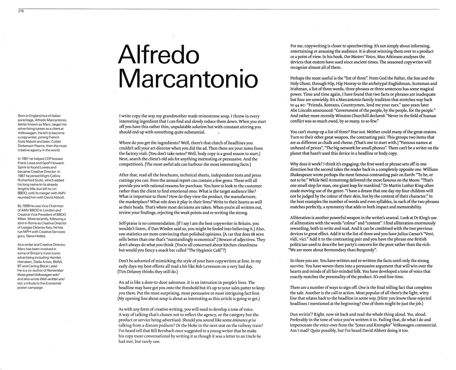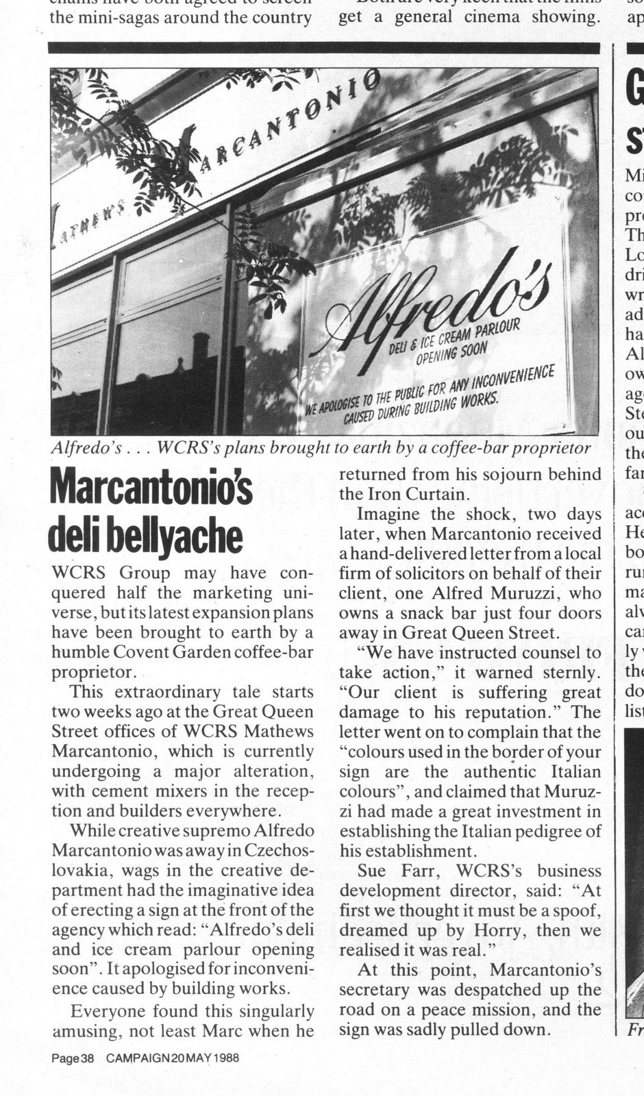 On the way out the door, they advise Frank that he needed a Creative Director and it should be the least-known and youngest of the breakaways – Alfredo Marcantonio.