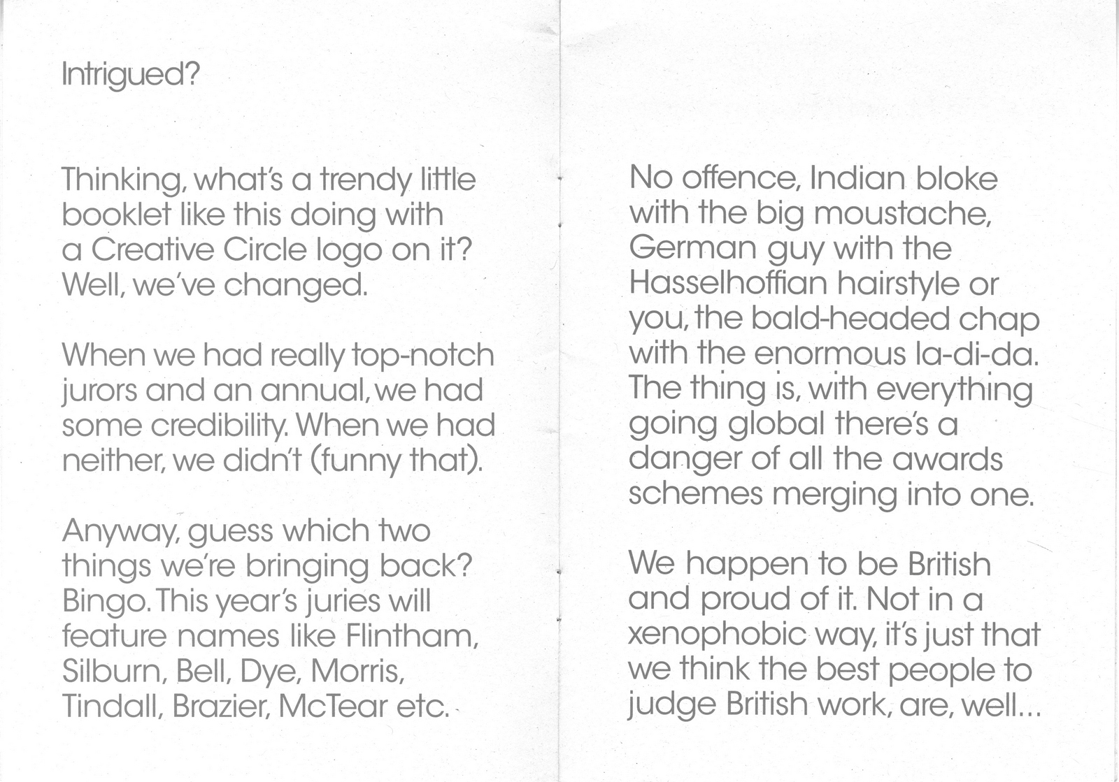 By the time I’d snuck into advertising the cool agencies were the new ones – GGT, BBH, AMV and the agency that carried Frank’s name.