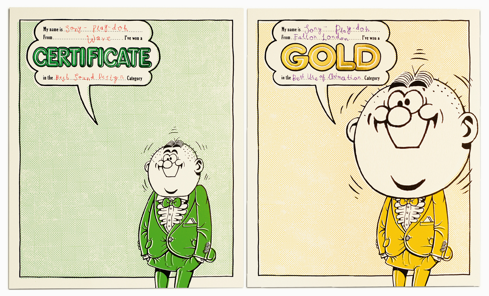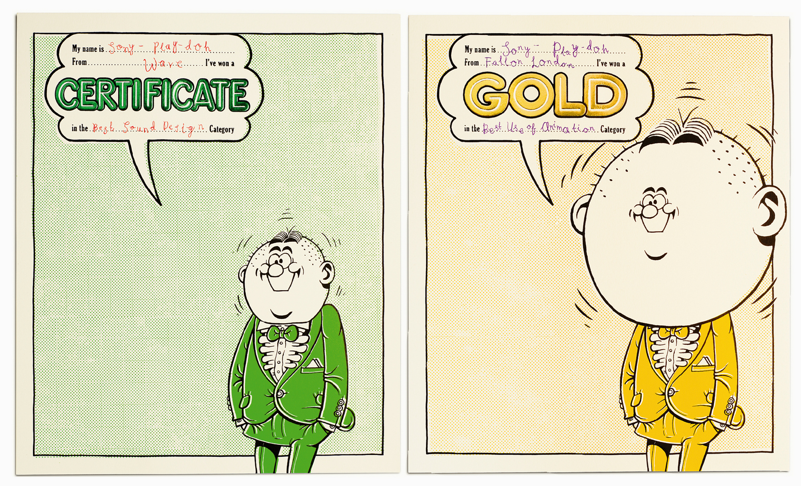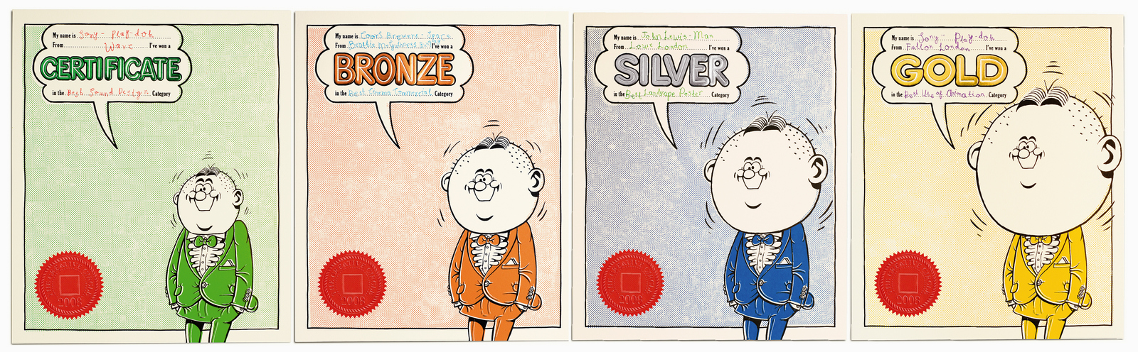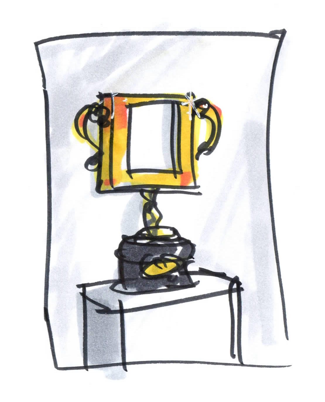 Because it's a silly idea, you'd figure just getting it realised was enough. As if you've been naughty and got away with it. that you come up with and ask your previous awards manufacturers to make.