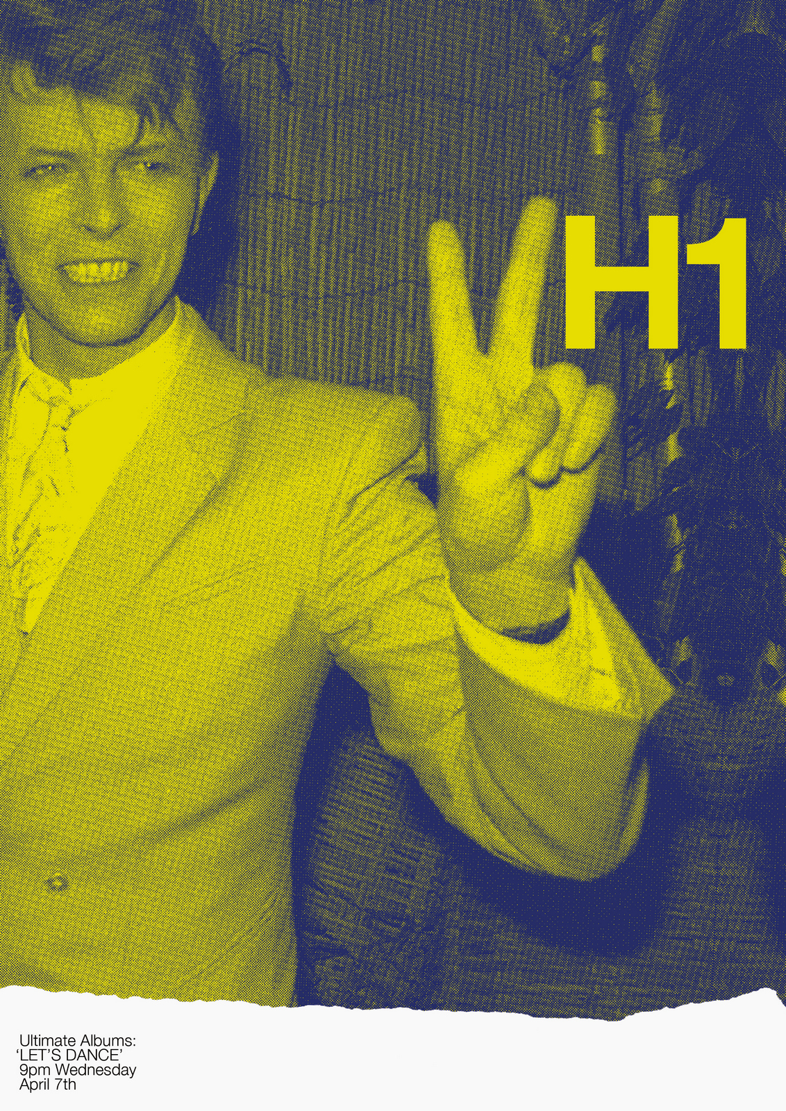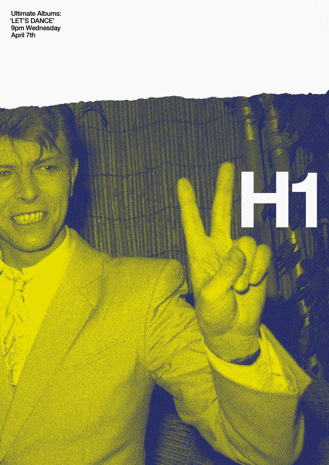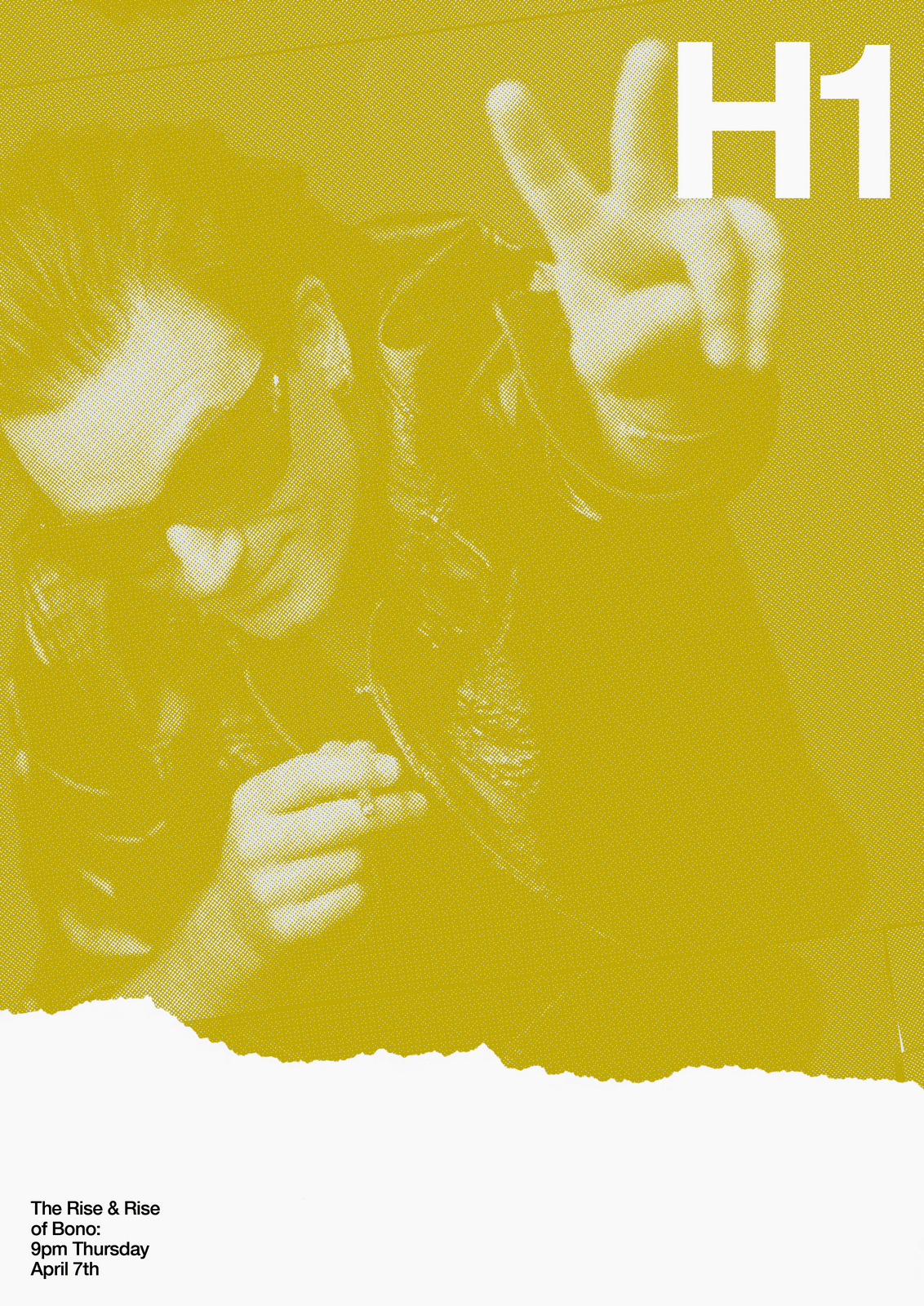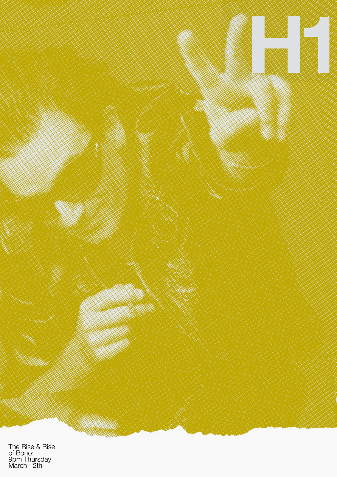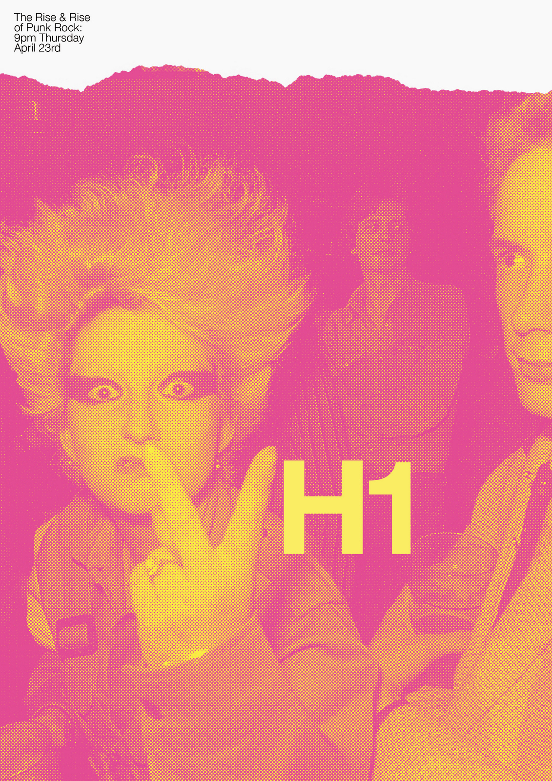 NEXT DAY: The first thing I see are rips?Rips are less interesting than rock stars, let's minimise them.Also, that white 'H1' seems too loud, it should feel like part of the image.