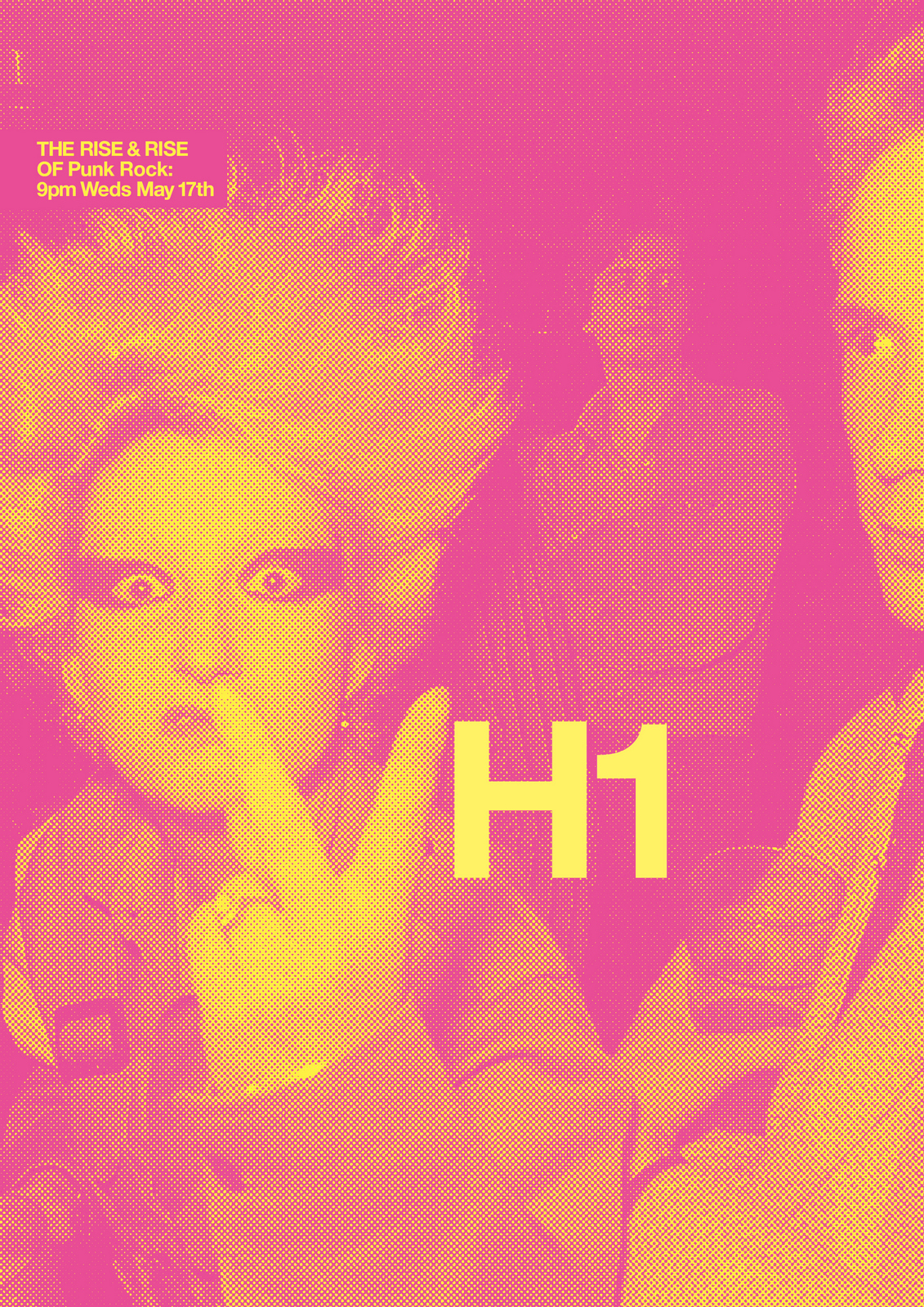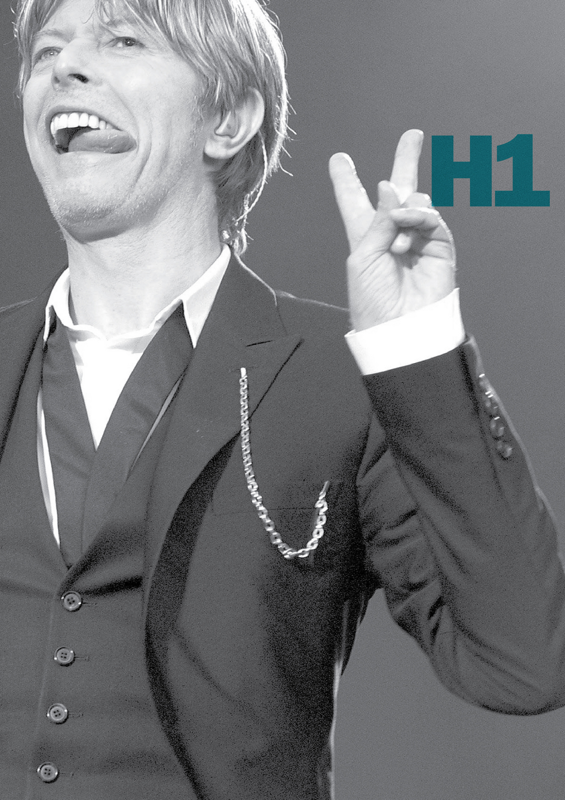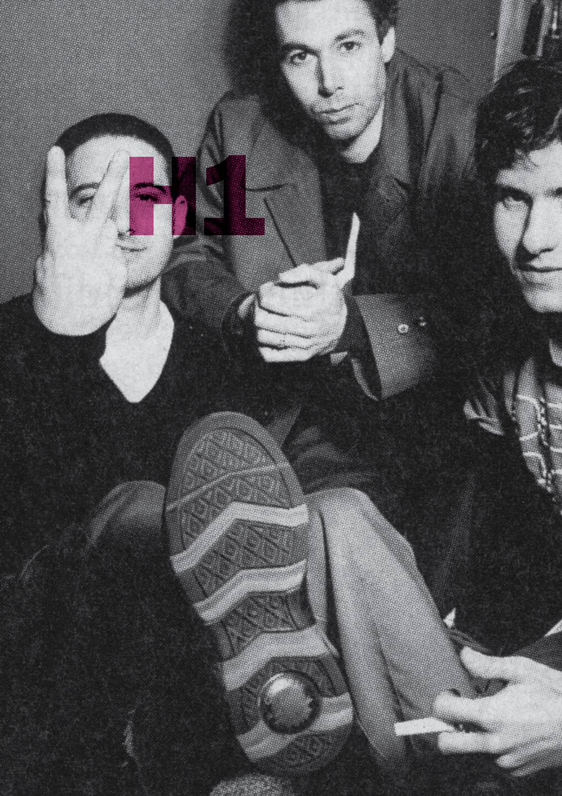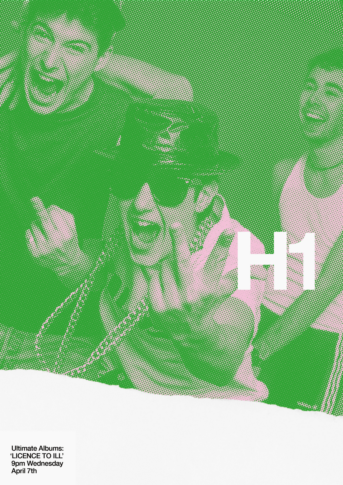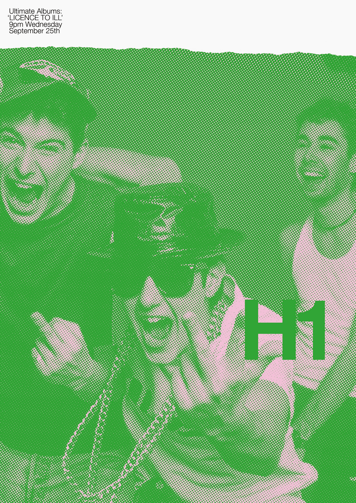 NEXT DAY: The first thing I see are rips?Rips are less interesting than rock stars, let's minimise them.Also, that white 'H1' seems too loud, it should feel like part of the image.