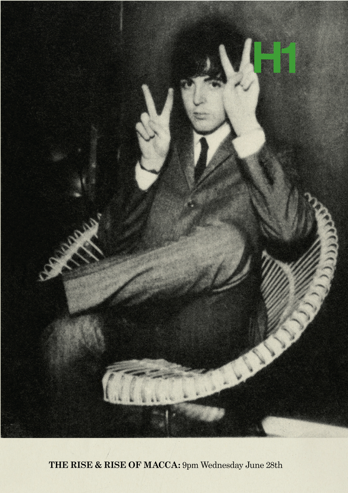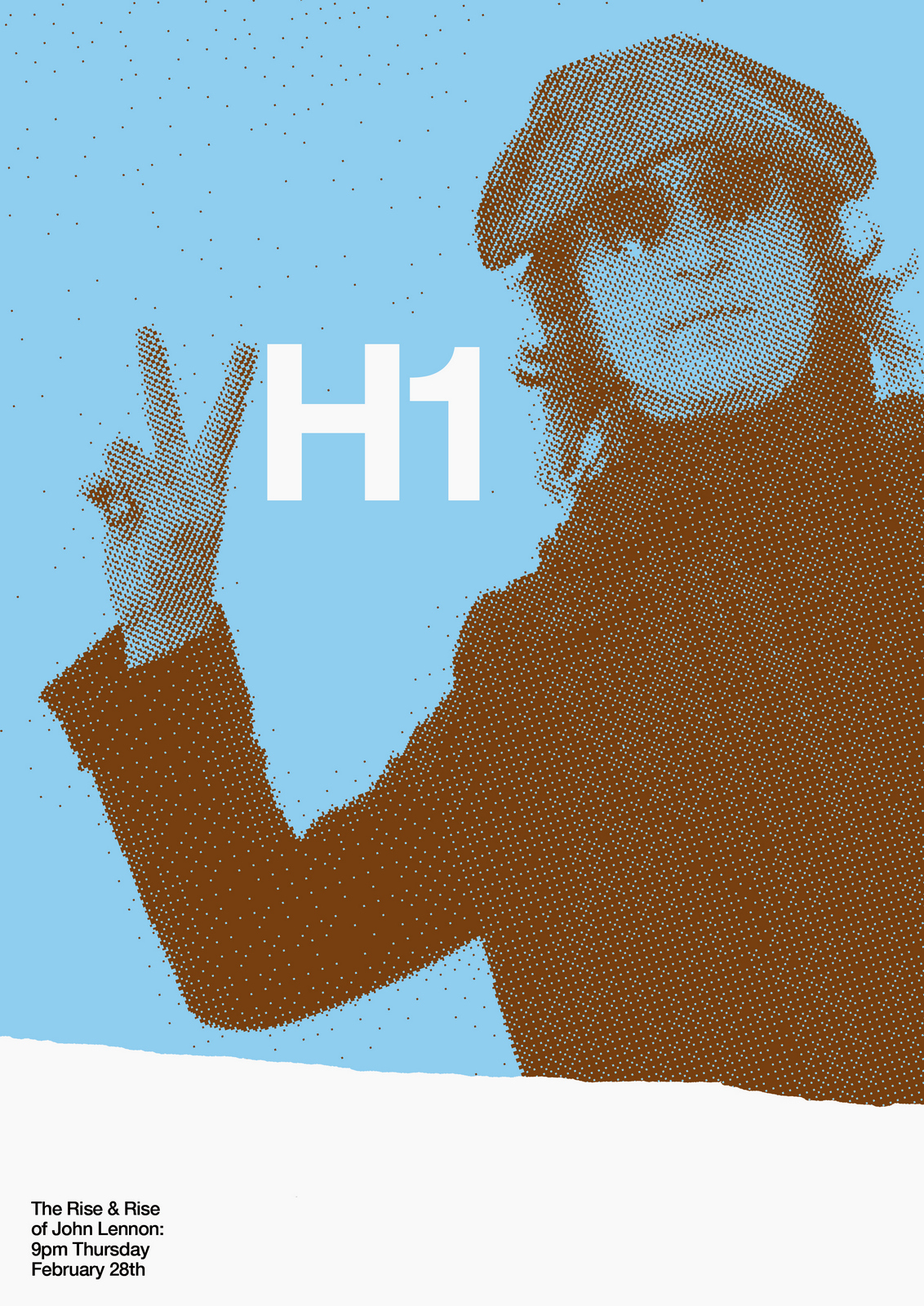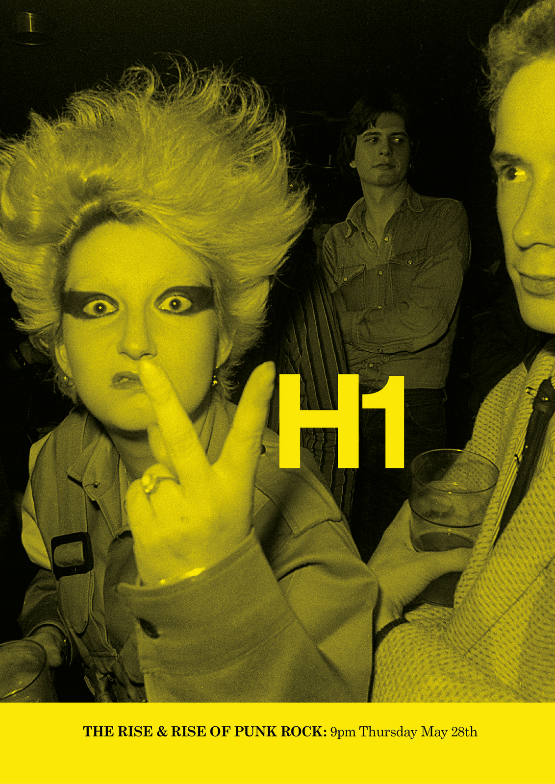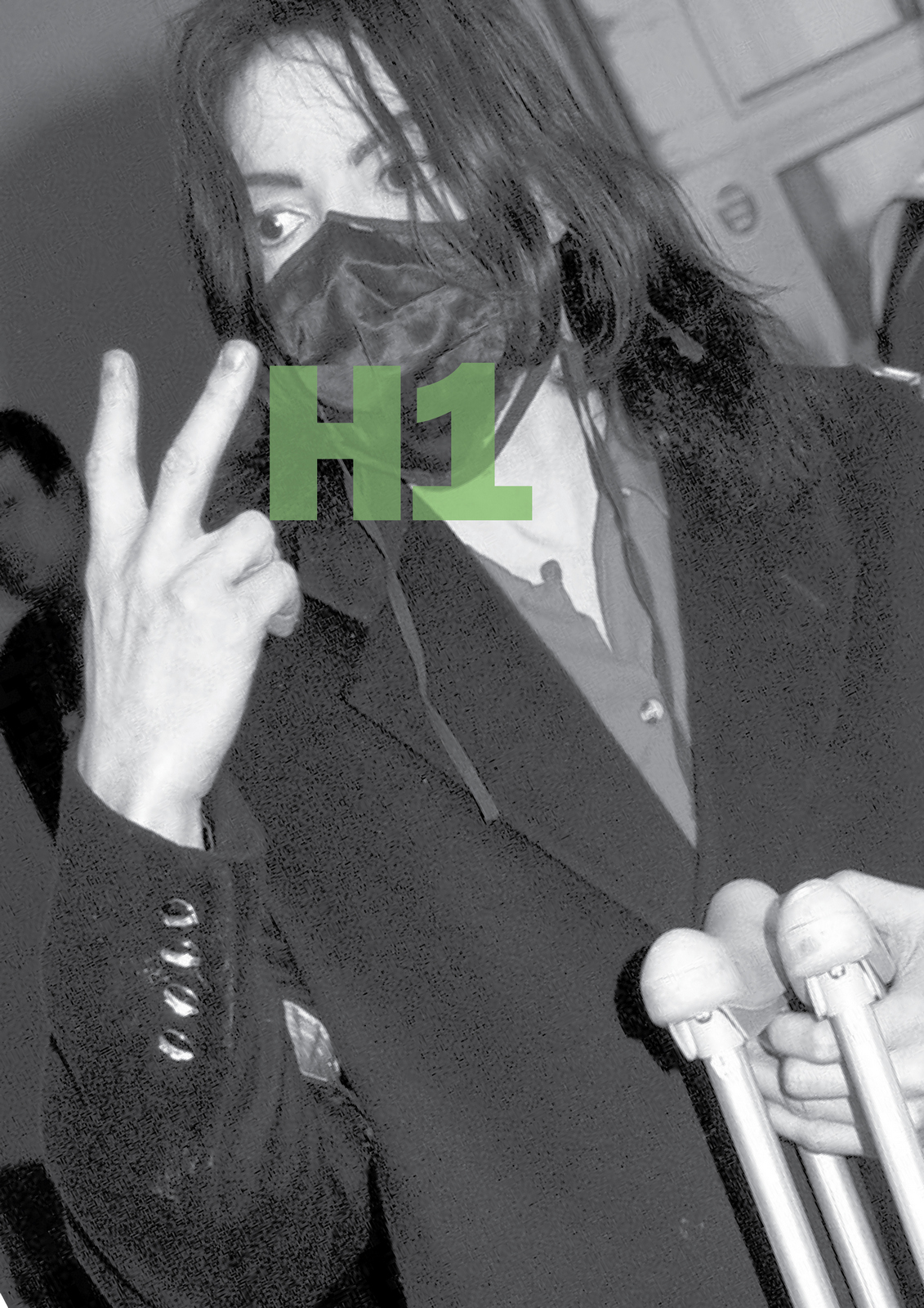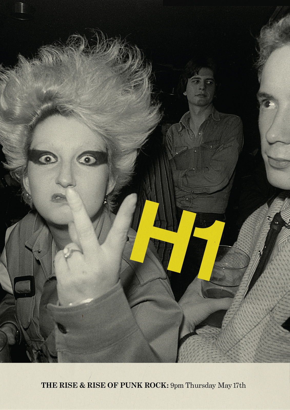 NEXT DAY: The first thing I see are rips?Rips are less interesting than rock stars, let's minimise them.Also, that white 'H1' seems too loud, it should feel like part of the image.