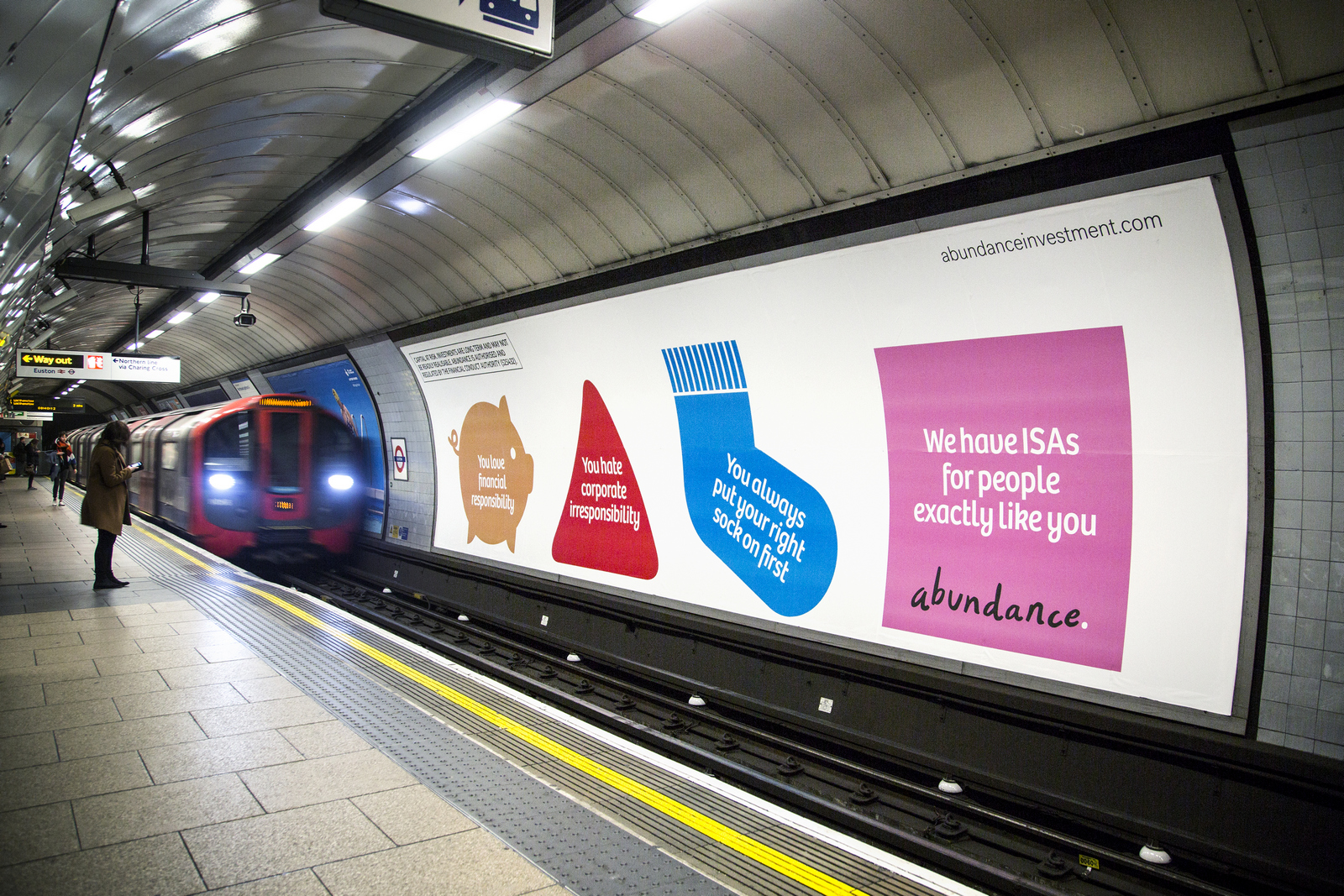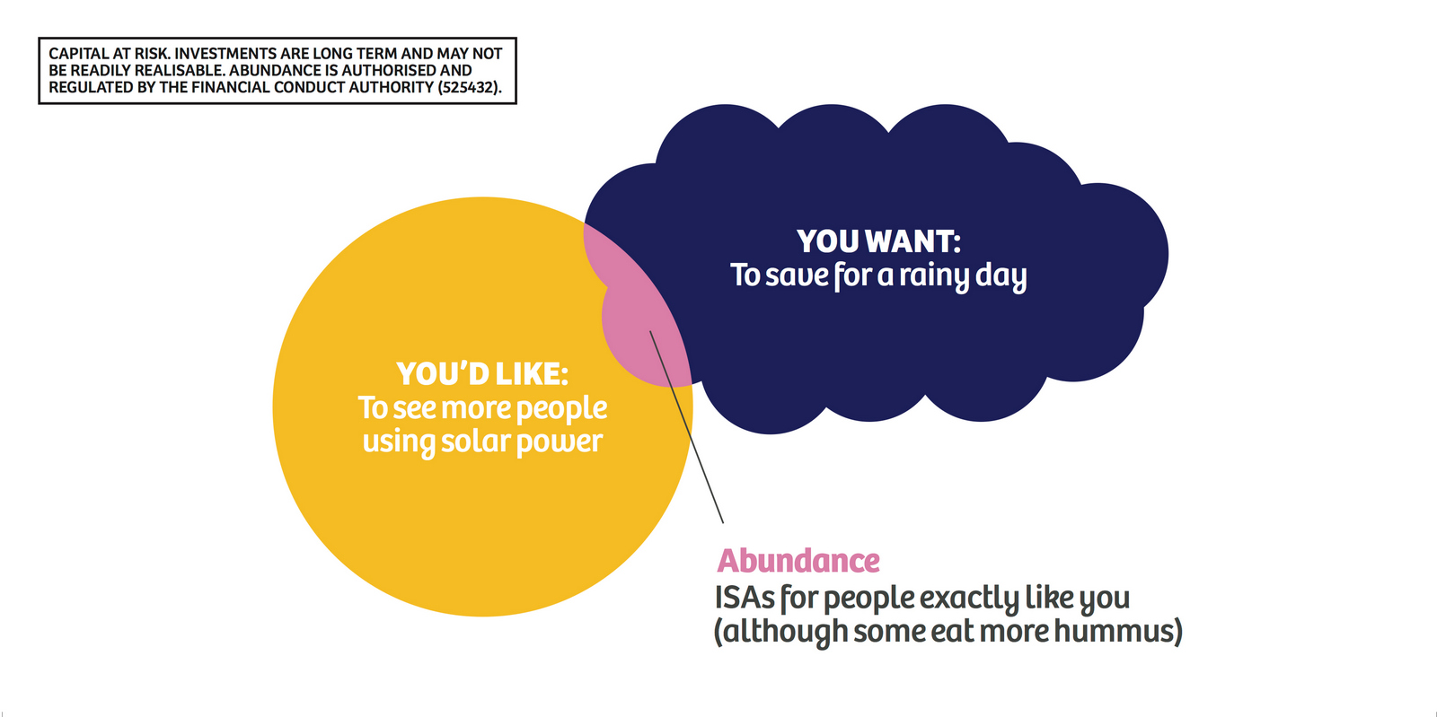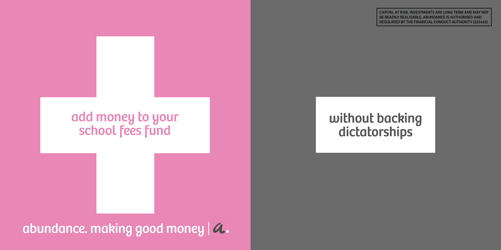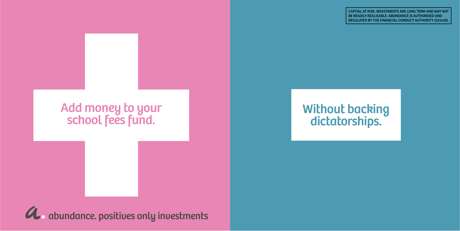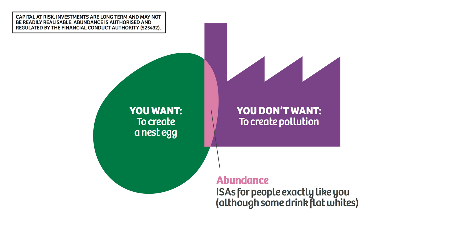 Not necessarily a bad decision.A shame though, as I liked the idea of owning a colour and changing and expanding out its graphic use with each new campaign.But a seed was planted.A decade later I got a brief for a new company that was investing in green projects; Abundance Investments.They didn’t have a big production budget, Nadav Kander pictures were out, graphics were in.If we are going to go graphic they needed to own a colour.But what?Most are taken and they aren’t making new ones.It would have to represent Abundances vibe – which is green, positive, utilitarian and non-corporate.First, anyone with green leanings use green.Seemed a bit obvious.Most financial institutions are blue, often dark.Orange felt positive but it was owned by Orange, the phone network.In the end pink was chosen.