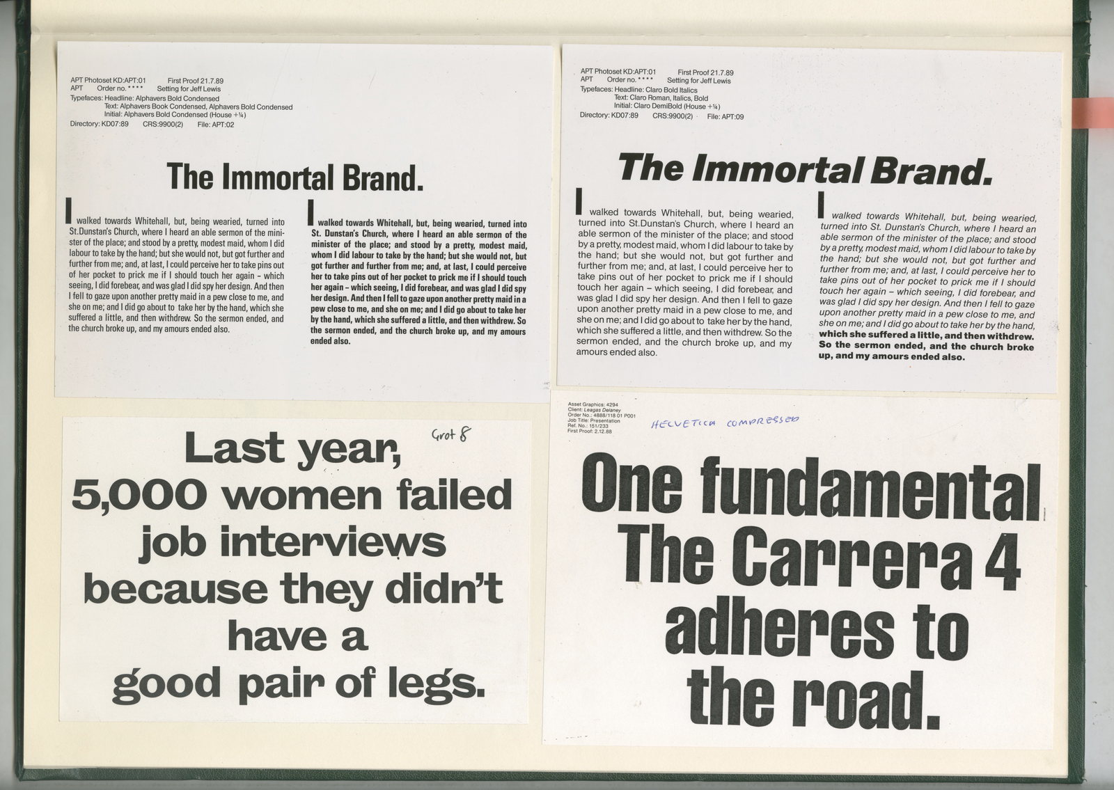Obviously there’s more Fred & Fabien, but probably the most interesting things in there are the bits of old typesetting I rescued from the Leagas Delaney bin.The studio was going all digital, so PMT machines, drawing desks, wax machines, art-workers a and bits of old setting were dumped.I managed to save a few bits of setting, if you eat a lot of carrots and have 20/20 vision you'll be able to spot a few cut marks between some of the characters.