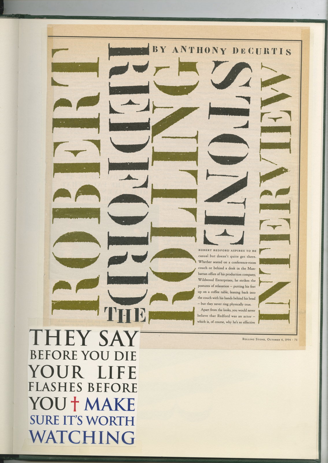 When I write these posts I sometimes forget that not everyone reading them was working in advertising or design 20 years ago.After the last post a lot of people asked me what the hell I meant when I said that the green book shouldn’t be called ‘Type’, it would be more appropriate to name it ‘The Fred & Fabien Files’.It was a joke, so much of the work in that typography scrapbook was from the same two guys.FRED WOODWARD was the art director or Rolling Stone; One of the cleverest, most playful art directors ever. The way linked the typography and imagery was revolutionary at the time.FABIEN BARON was the art director of Vogue Italia, Interview Magazine and Harper’s Bazaar; Probably the most stylish magazine art director of the last fifty years.Both influenced everyone in the business back then, their influence can still be seen today, I’ll probably do a post on each at some point.Anyway, more ‘Fred & Fabien Files’, enjoy.