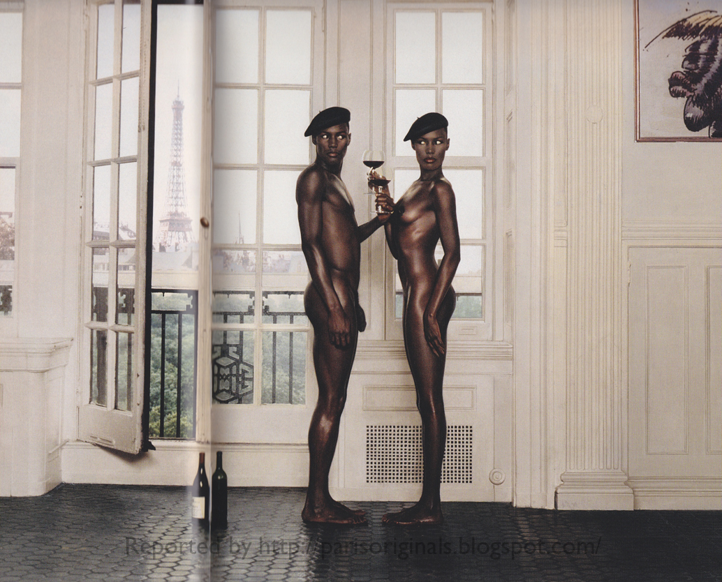 Their idiosyncratic reference points and take on culture gives them their aesthetic.It’s almost impossible to mimic someone else’s aesthetic.So, although we tried very hard, I, and Nick Lewin, weren’t Jean Paul Goude.He was just too damn idiosyncratic.He was a brilliant illustrator, photographer, Art Director, Director, Choreographer, Wallpaper Designer, etc.His images, whether moving or still leap out of magazines, spring from screens.They’re striking and incredibly seductive.This is him, (acting the giddy goat):