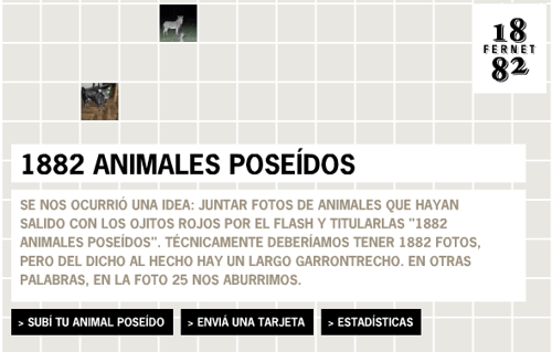 "We did this for 1882 Fernet.We gathered what we thought were the best pictures of pet and animals with red eyes, (the classic unwanted effect), and we baptised this series ‘1882 possessed (or haunted) animals).It was mad, we had loads of these pictures all over Cordoba CityIt looked strange... and beautifulNo logo needed on most of them but a reminder here and there that this was a 1882 thing.People loved/hated/complained/detested it, but no one doubted which brand was behind it."