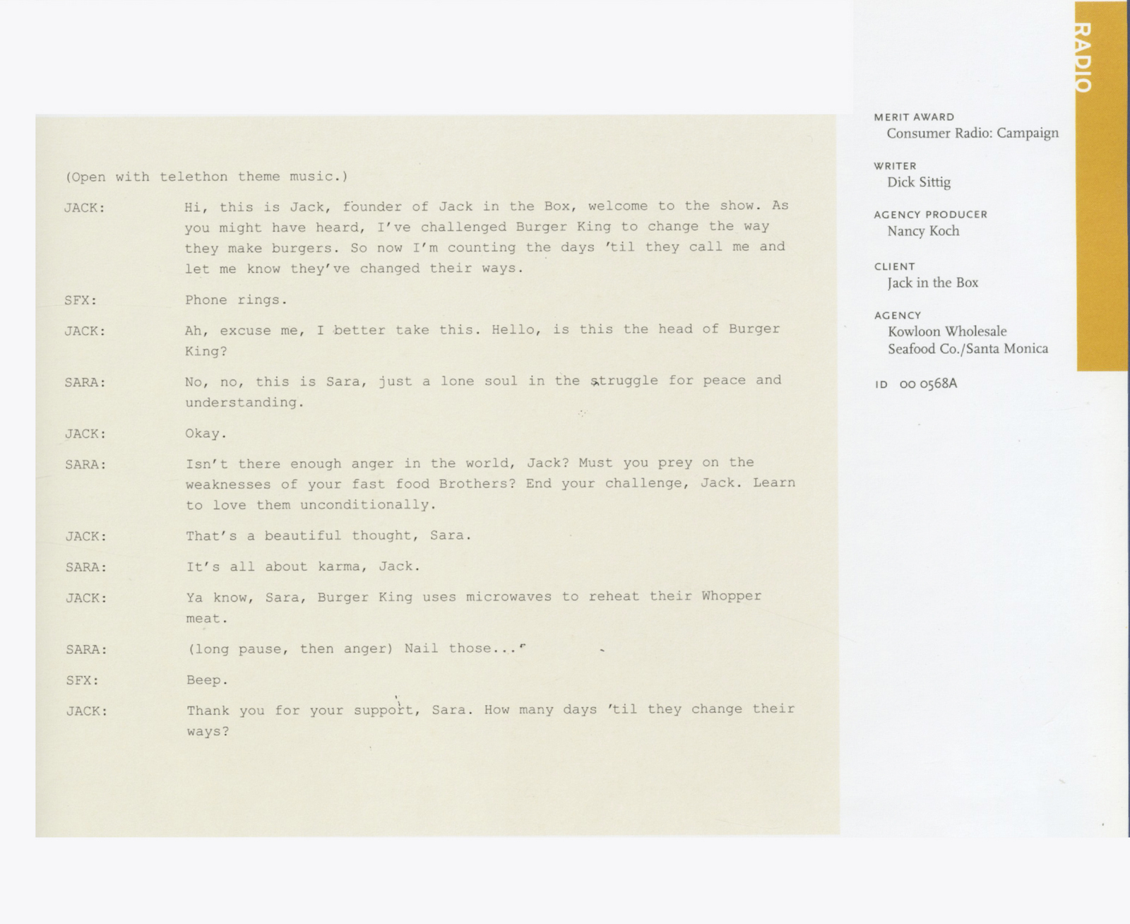 KOWLOON WHOLESALE SEAFISH Co.(Later changed to SECRET WEAPON MARKETING.)Jack in the Box.