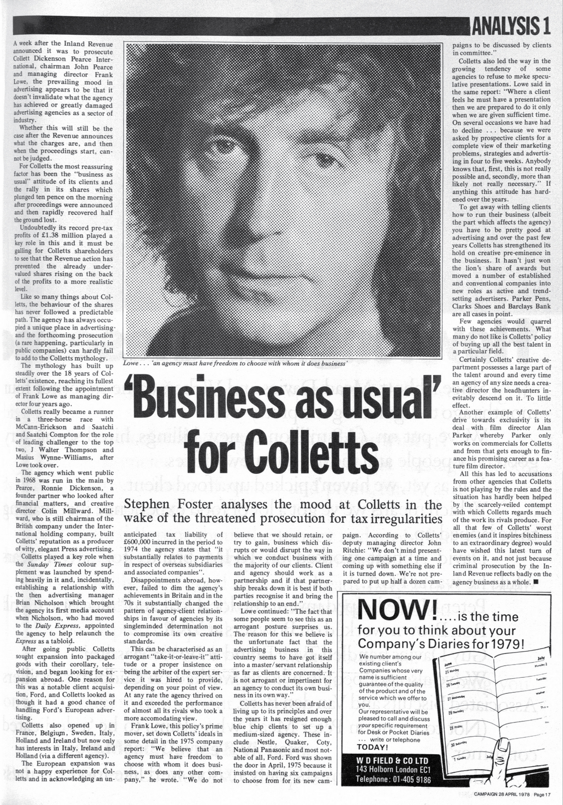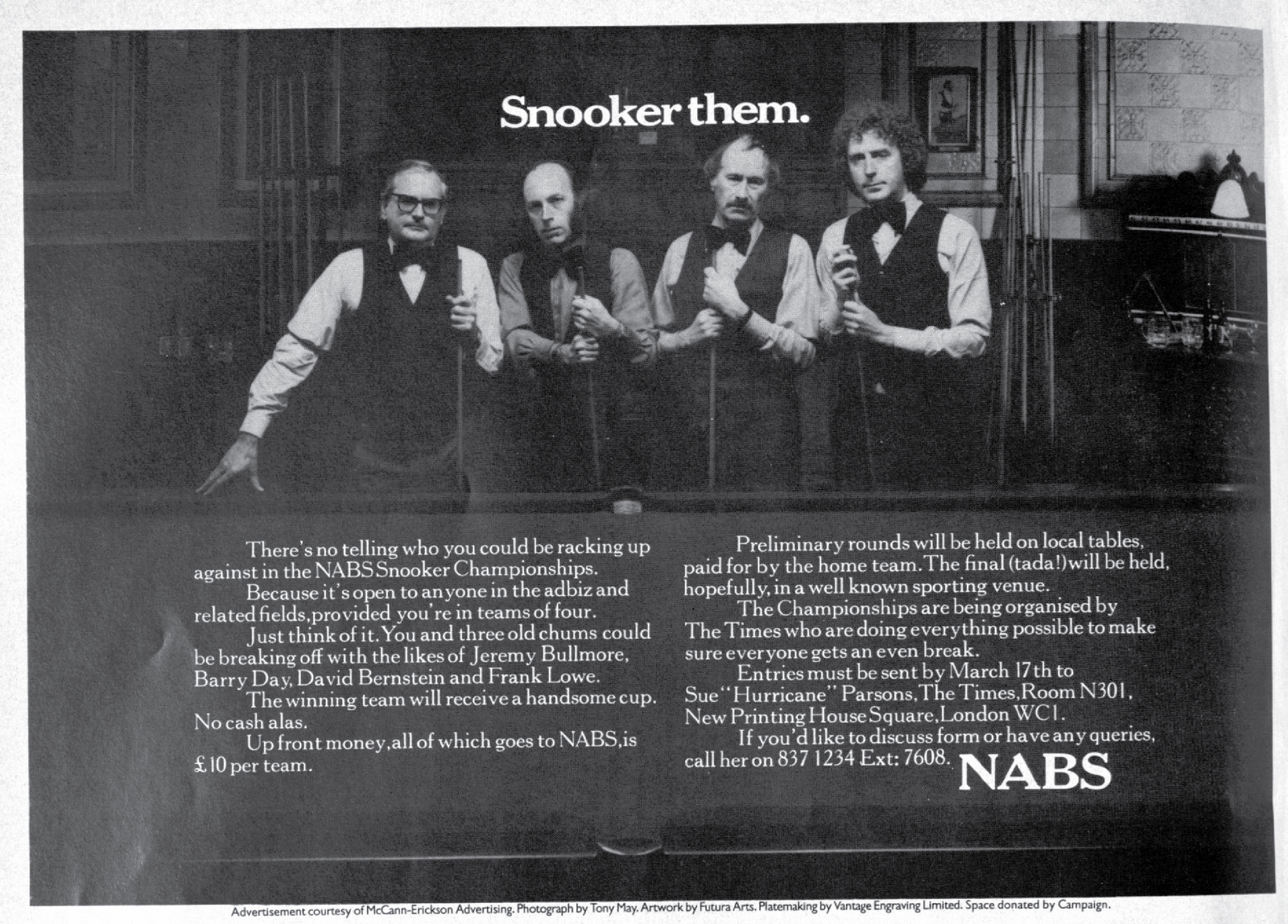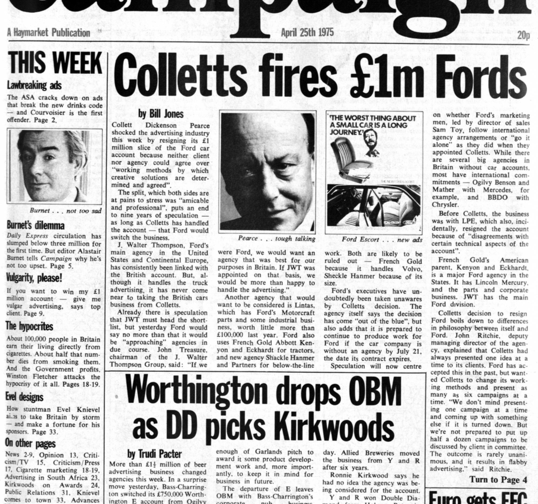 (Frank is on the left, spotted looking bored by a producer at the agency, then cast.)COLLETT DICKENSON PEARCE.