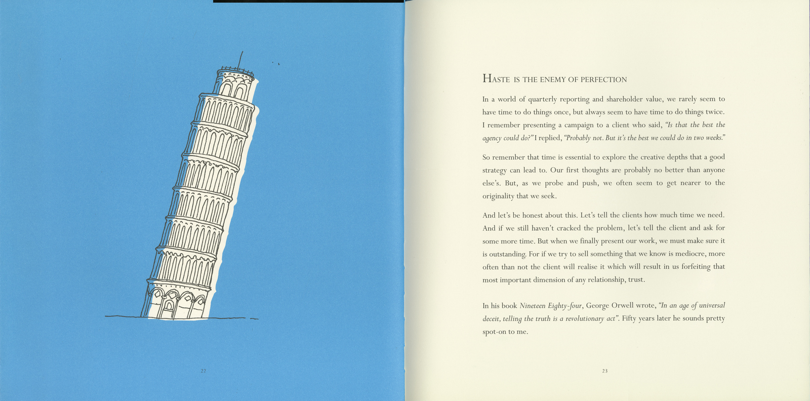 "Frank Lowe single-handedly cajoled a whole generation of writers, art directors and film directors into revolutionising British and world advertising.” - Sir Alan Parker.It seemed a bit over the top.I know he was very good and had a big impact on the business, but 'single-handedly'?I guess Alan is his mate, so probably bigged him up a bit.Having just spent three hours nose to nose with Frank, I got a taste of what Alan was talking about.I can't think I've met anyone who's as sure of their own opinion.That may read like a back-handed compliment, it's not meant to be.Just that he totally believes in the power of advertising, he's so unwavering that it was striking.Especially today, when nobody seems be very sure of what advertising even is.It's easy to see (and hopefully hear) how generations of clients and agencies would've been persuaded, cajoled or battered into aiming higher.Higher to Frank meant "not just achieving sales success, but ensuring any advertiser entering people’s lives uninvited, left them a little better or richer for their visit”.Enjoy being cajoled.