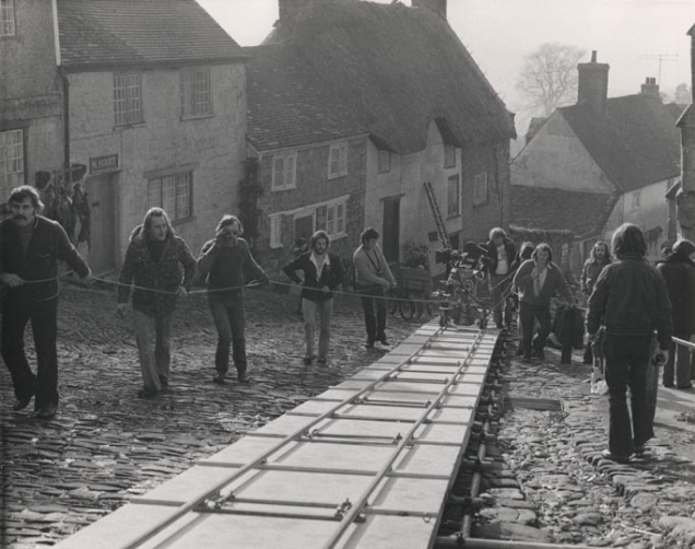 It was the film company art director, Michael Seymour, who found a way round the problem. He figured out that if a hill like this existed, somebody somewhere would have photographed it. And very likely, this photograph would appear in a book. So he confined his reconnaissance trips to his local public library. And, sure enough, in an obscure book on landscapes, he discovered an old black and white picture of Gold Hill in Shaftesbury, a small Dorset town. ‘I think you’ve been looking in the wrong place, he said to David and Ronnie, ‘you need to go south, not north’.