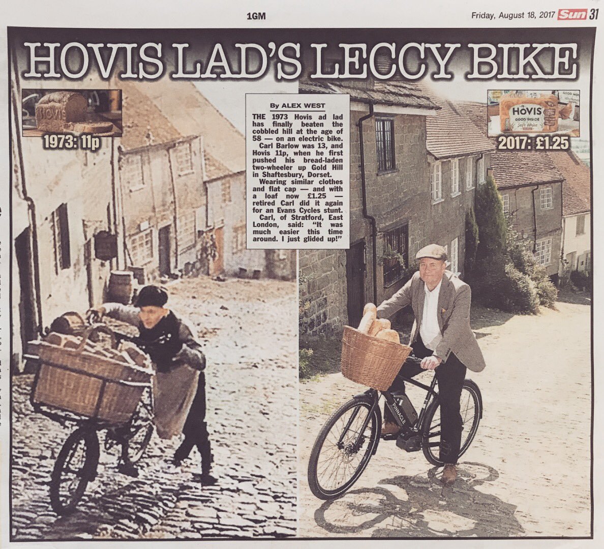 Gold Hill, of course, has now become famous as the location for the ‘Bike Ride’ commercial and attracts many more tourists than it did when David and Ronnie discovered it. A gold loaf has even been erected to tell visitors that they are standing at the spot where bread was taken to the top of the world.