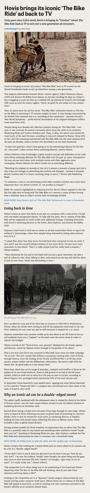 The famous Hovis ‘Bike Ride’ commercial was relatively easy to write.But, boy, did it take perseverance to find somewhere to film it.