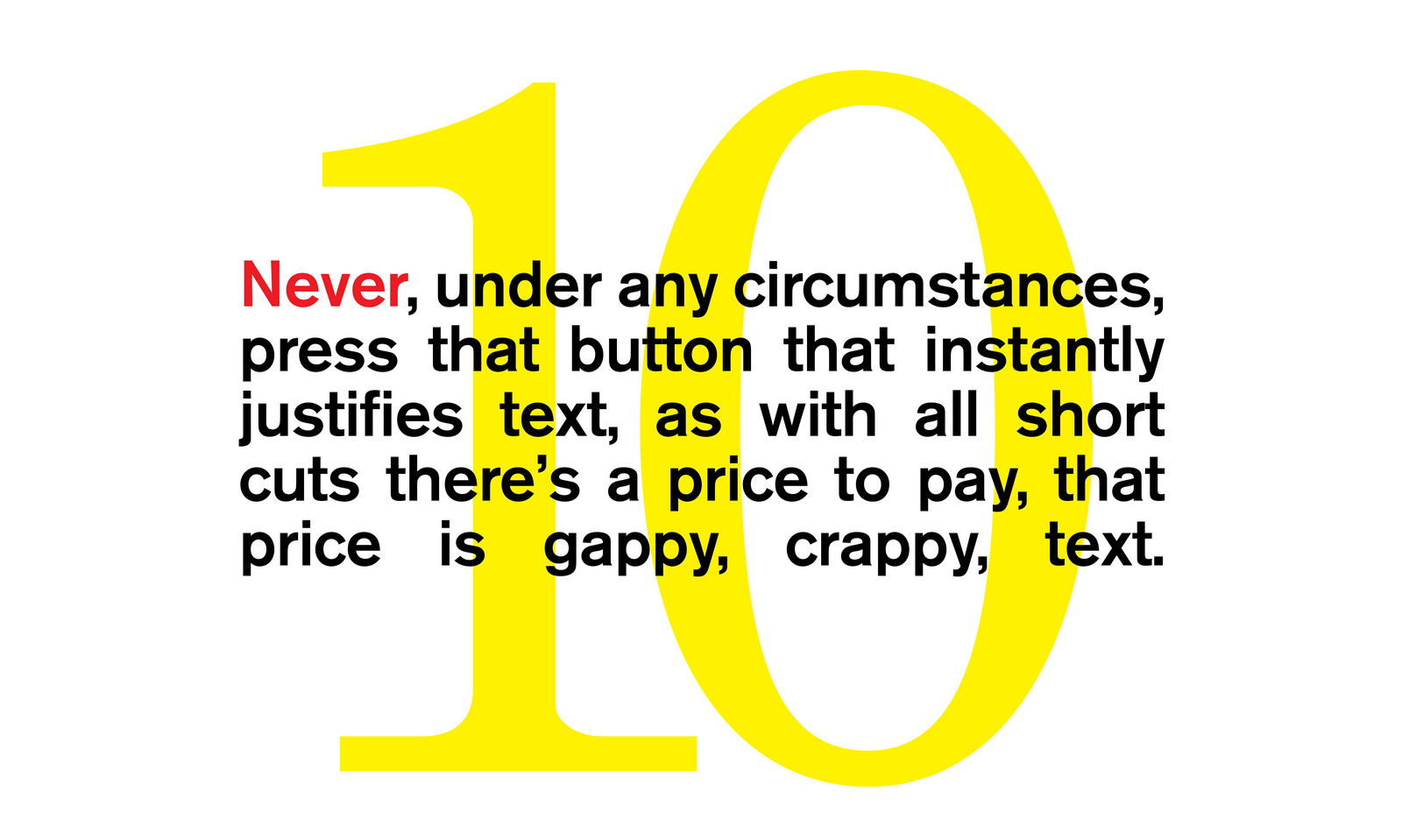 I keep spotting my mate Dave, (a future podcast guest, when I can pin the fucker down), and at the bottom of the ads I'm reminded that overhanging punctuation hasn't hit Facebook yet.It got me thinking.Maybe someone else out there hasn't heard come across overhanging punctuation?What other typography basics have Facebook been deprived of?Who's passing this stuff on?So I thought I'd put down ten basic typography tips.Actually, tips is overselling them; basics.(I wonder whether Facebook's market Cap is still at $494.82Bn?)